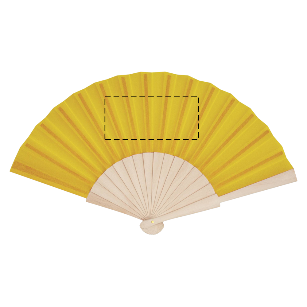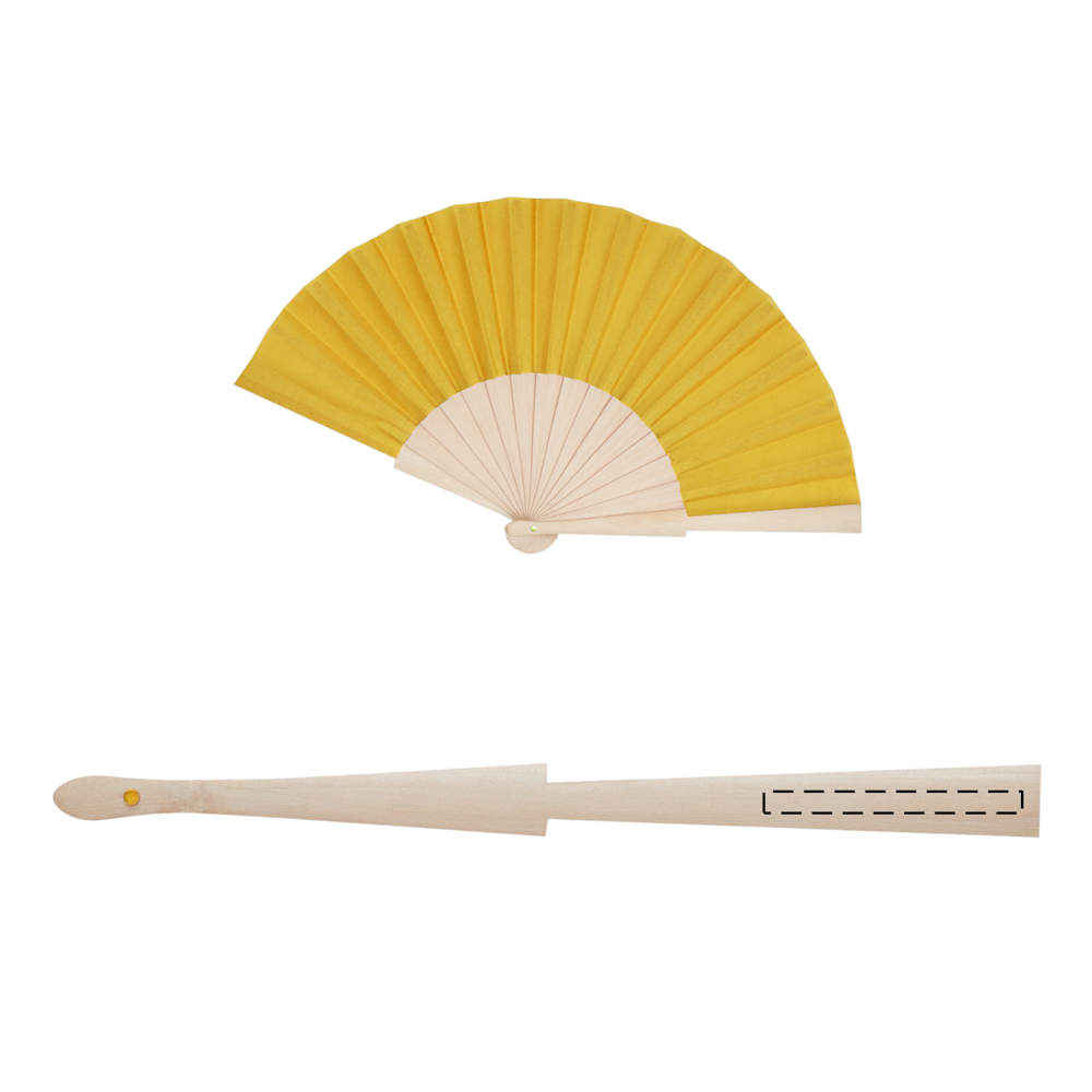 Opvouwbare waaier ECO COOL: stevig houten handvat en veerkrachtige houten ribben met bekleding van gerecycled polyester.