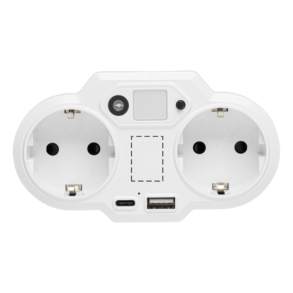 USB-adapterstekker voeding met nachtlampje ENDLESS POWER NIGHT: 2 geaarde Schuko-stopcontacten met kinderbeveiliging, 1 USB A-poort, 1 USB type C-poort, totaal USB-uitgangsvermogen: max. 3,4 A, uitgang vermogen Schuko stekker max. 3.250 W, nachtlampje met lichtsensor en aan/uit schakelaar, blauwe status LED, niet geschikt voor het VK