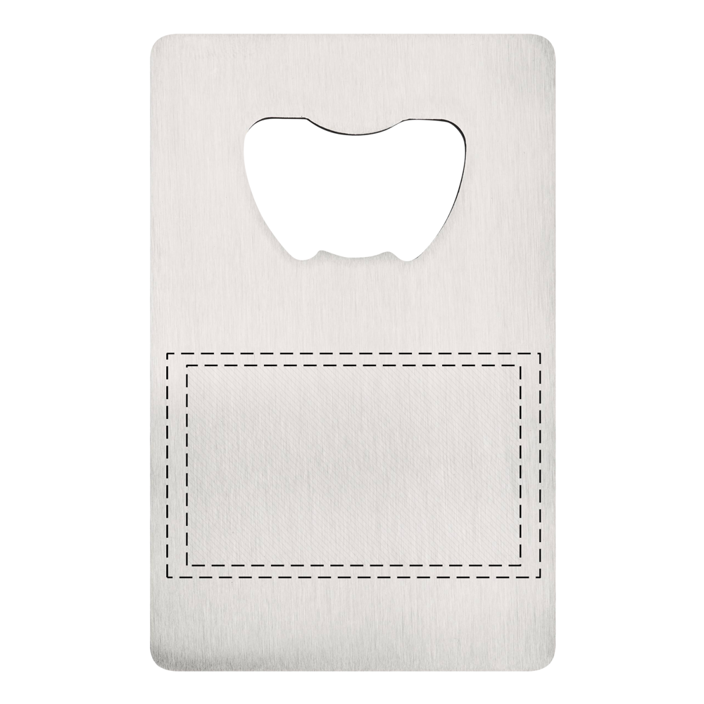 RVS flesopener STEEL met groot vlak voor het aanbrengen van een opdruk of gravure.