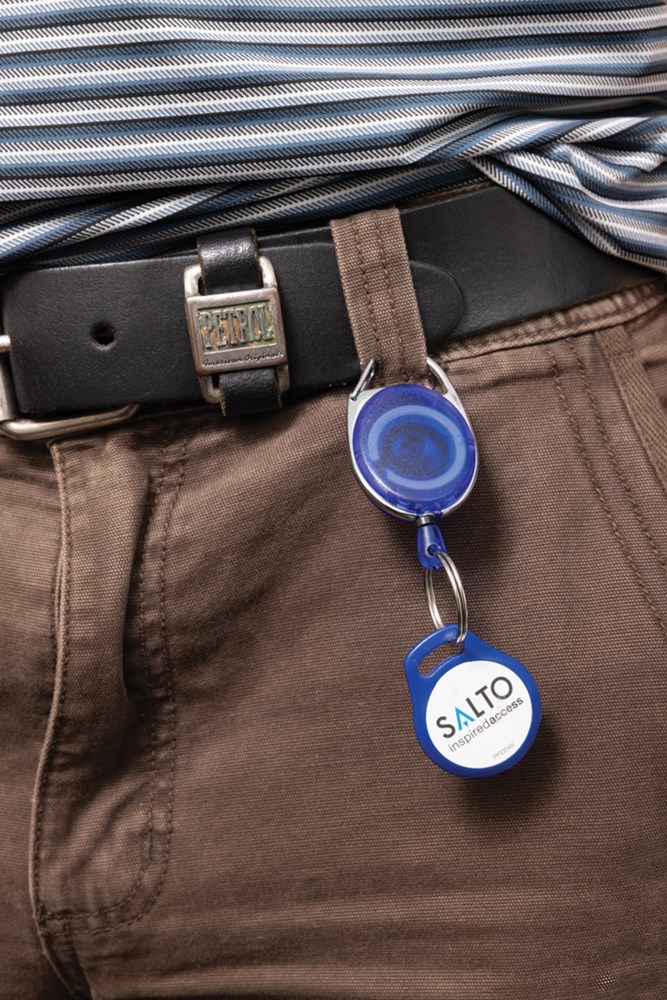 Rolclip-sleutelhanger gemaakt van RCS-gerecycled ABS en zinklegering. Ideaal item voor op kantoor, op een beurs of zelfs tijdens het skiën. Met koord van 60 cm om badge te bevestigen voor gemakkelijke toegang. Met karabijnhaak voor bevestiging aan tas of kleding. Totaal gerecycled materiaal: 34% op basis van het totale gewicht van het item. RCS-certificering zorgt voor een volledig gecertificeerde toeleveringsketen van de gerecyclede materialen. Verpakt in papieren zak.