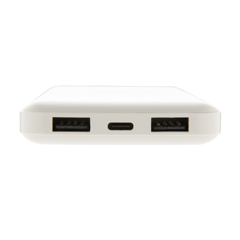 Krachtige en draagbare 10.000 mAh powerbank gemaakt van lichtgewicht ABS die zo perfect in uw zak past dat u hem overal mee naar toe kunt nemen. Als deze volledig is opgeladen, beschikt u over voldoende energie om uw mobiele telefoon maximaal vijf keer op te laden. De powerbank bevat een 10.000 mAh grade-A high density lithiumpolymeerbatterij met een lange levensduur. Met dubbele USB-poort. De lichtindicatoren geven het resterende energieniveau aan, zodat u altijd weet wanneer u het apparaat opnieuw moet opladen. Input 5V/2A. Type C input: 5V/2A Output USB 1: 5V/2A Output USB 2: 5V/1A