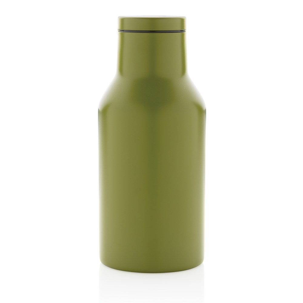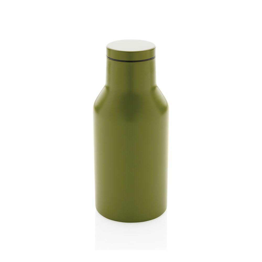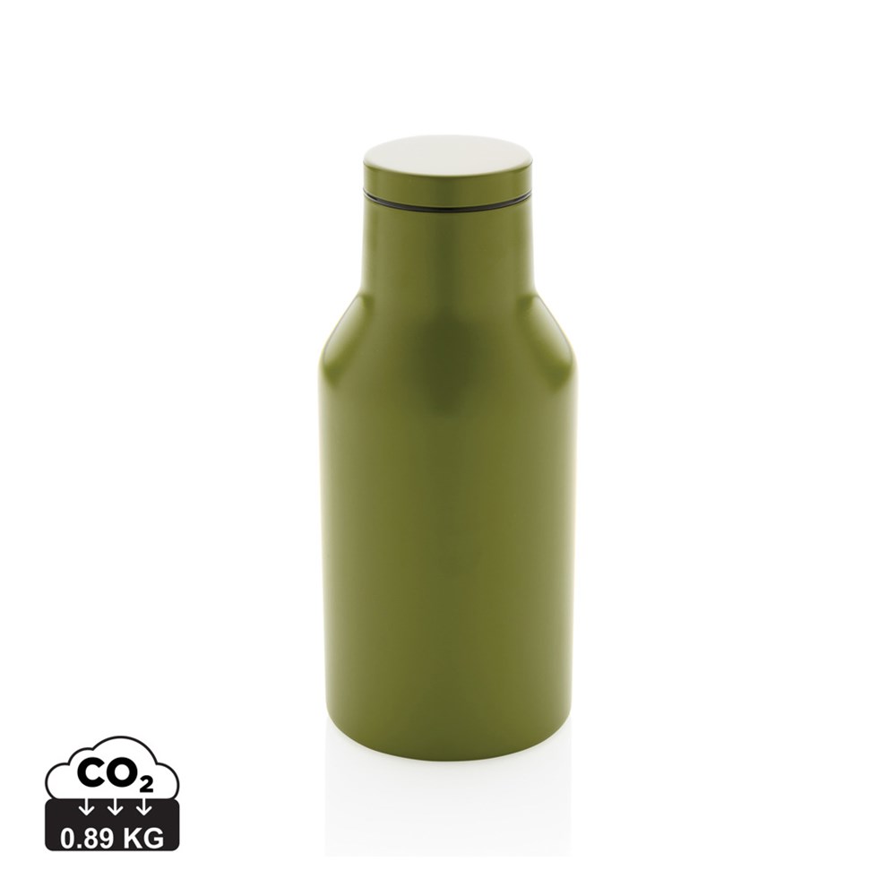 Deze compacte RCS-fles van gerecycled roestvrij staal wordt geleverd met een veilig schroefdeksel met een brede opening voor eenvoudig schoonmaken en vullen. Deze compacte fles is gemaakt van gerecycled roestvrij staal en heeft een dubbelwandige constructie om je favoriete dranken 3 uur warm of 6 uur koud te houden. Gemaakt met RCS (Recycled Claim Standard) gecertificeerde gerecyclede materialen. RCS-certificering zorgt voor een volledig gecertificeerde toeleveringsketen van de gerecyclede materialen. Totaal gerecycled materiaal: 89% op basis van het totale gewicht van het item. BPA-vrij. Capaciteit 300ml. Inclusief FSC®-gecertificeerde kraftverpakking.