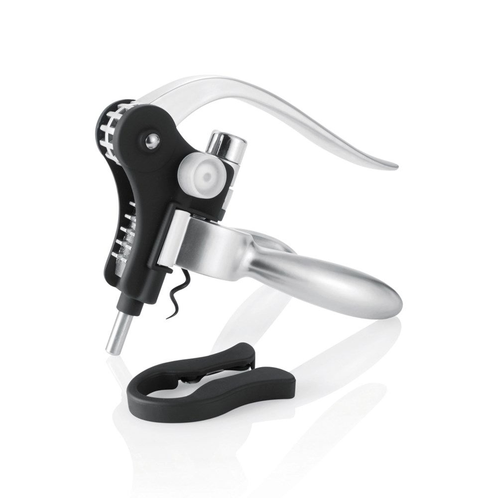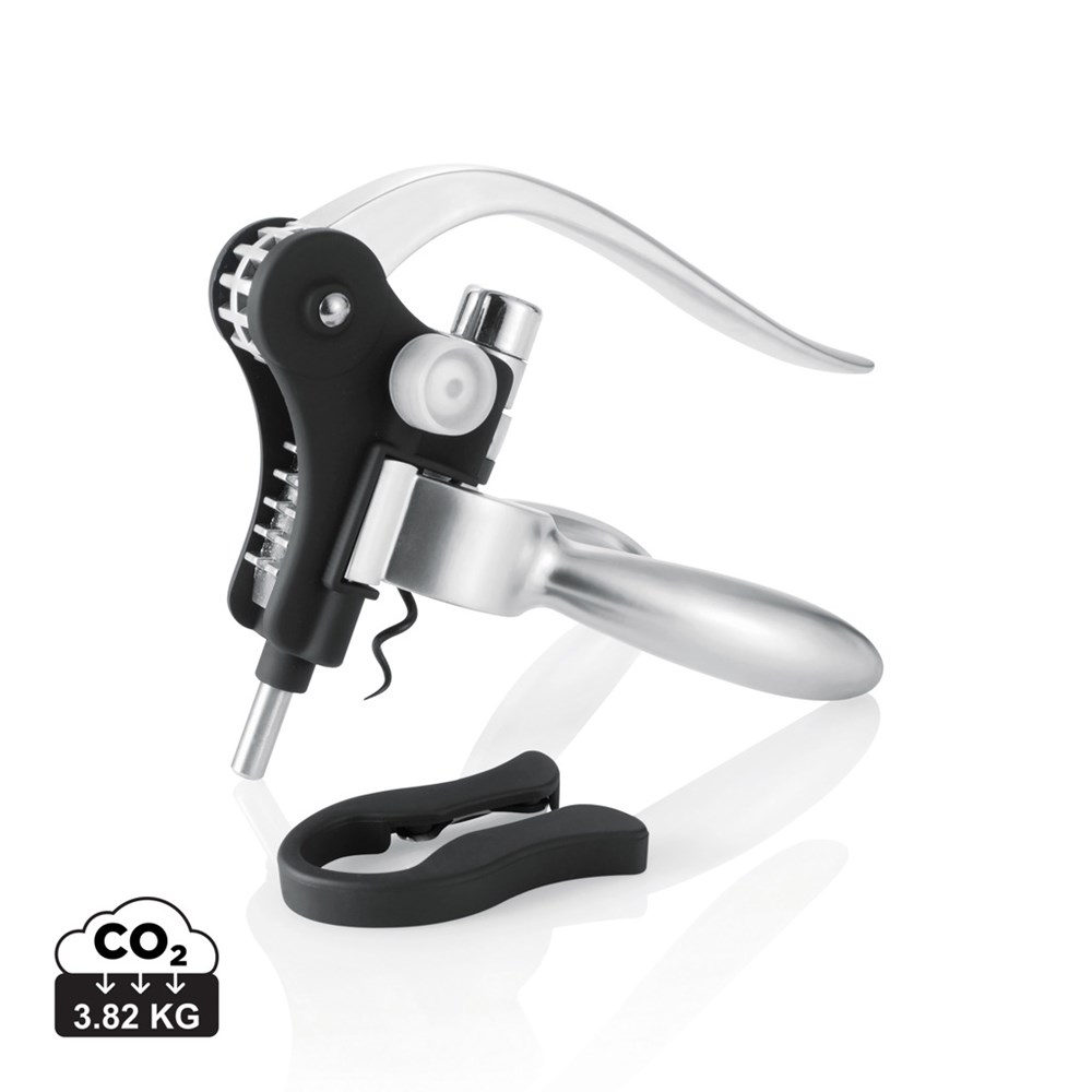 Gemaakt van aluminium en gehard staal met Teflon gecoate schroefdraad inclusief loodsnijder verpakt in luxe geschenkverpakking met wijnadvies.