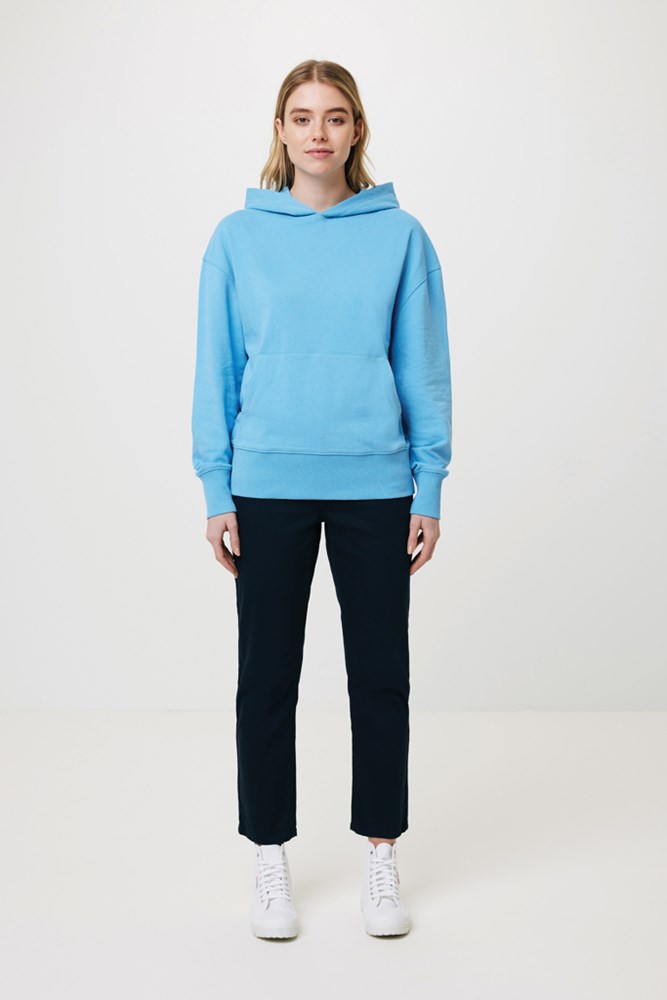 Unisex relaxed fit hoodie gemaakt van 100% katoen, waarvan 50% gerecycled en 50% biologisch, in 340 G/M². De hoodie heeft een relaxte pasvorm met verlaagde schoudernaden en wijdere lange mouwen. Het heeft een dubbellaagse capuchon en 2x1 rib. De zachte, gebrushte binnenkant zorgt voor extra draagcomfort. Het gebruik van echte gerecyclede en biologische stoffen en claims over de impact op het milieu zijn gevalideerd door het gebruik van de AWARE™ fysieke tracer en blockchain-technologie. Door de QR-code te scannen, krijgt u toegang tot een uniek digitaal paspoort van het product. 2% van de opbrengst van elk verkocht product wordt gedoneerd aan Water.org. Dit product is OEKO-TEX® STANDARD 100 gecertificeerd. Door het gerecycled materiaal kunnen eventueel kleine oneffenheden of lichte kleurverschillen ontstaan.