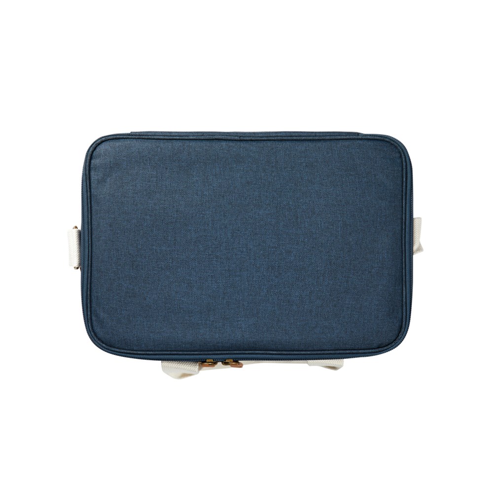 Een ultieme koelmand met gemêleerde kleuren en details gemaakt van katoen en imitatieleer. De koeltas heeft ook een klein compartiment aan de buitenkant van de koeltas, dat ruimte biedt voor nog andere spullen. De dikke EVA-vulling zorgt ervoor dat de kou lang wordt vastgehouden. Het is ook gemakkelijk te reinigen en te drogen na gebruik. Met een verstelbare schouderband en een dubbel handvat heeft u verschillende manieren om de koeltas te dragen.