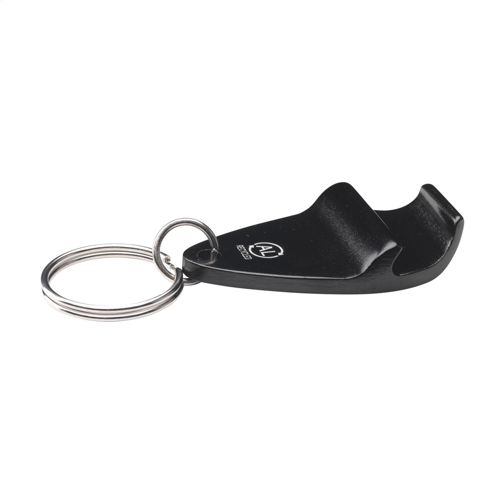 Sleutelhanger met flesopener van gerecycled aluminium en metalen sleutelring. GRS-gecertificeerd. Totaal gerecycled materiaal: 75%. Door het gebruik van gerecycled aluminium worden er minder nieuwe grondstoffen gebruikt tijdens de productie van dit product. Dit betekent minder energieverbruik en minder gebruik van water. Per stuk verpakt.