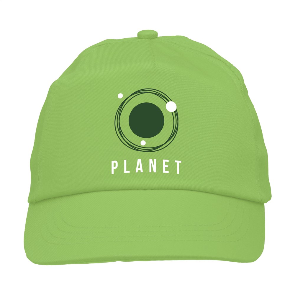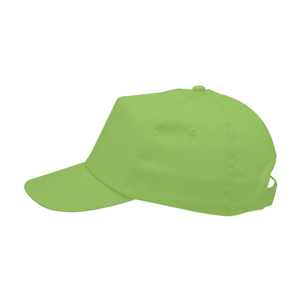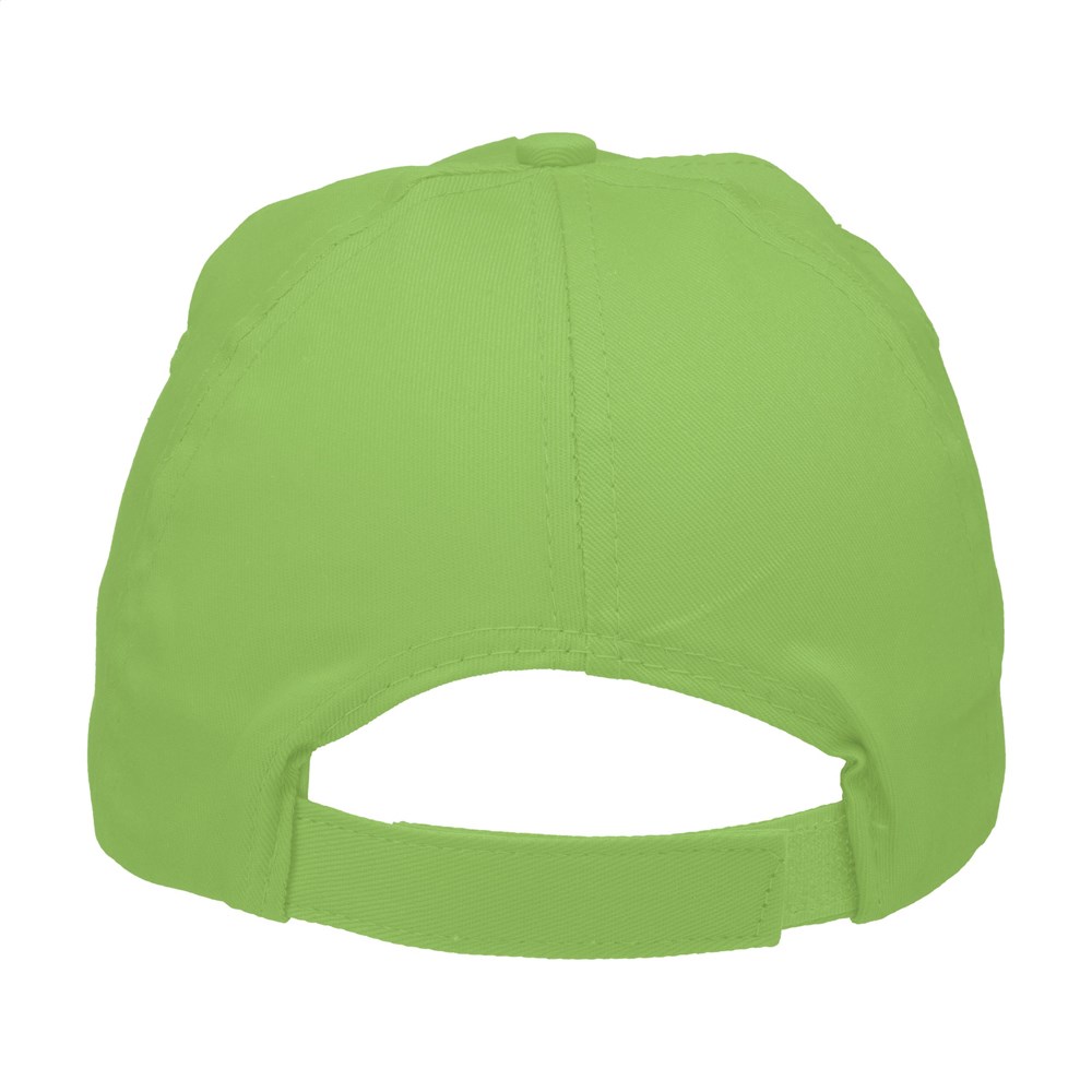 Baseballcap van 100% katoen met voorgevormde klep en klittenbandsluiting.