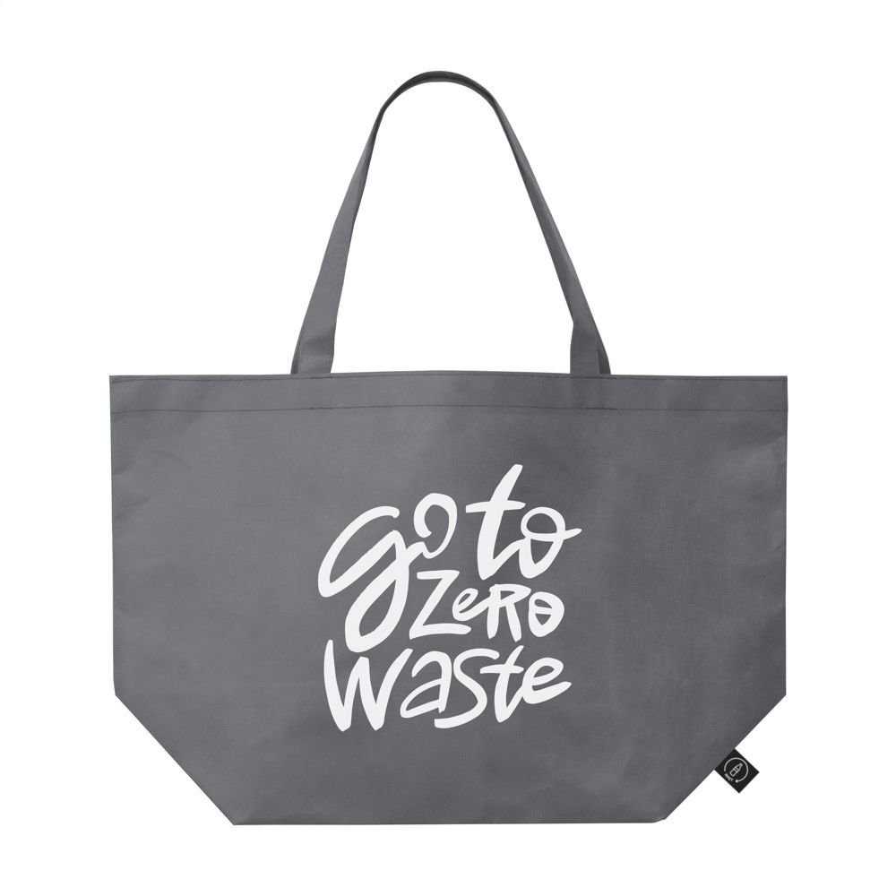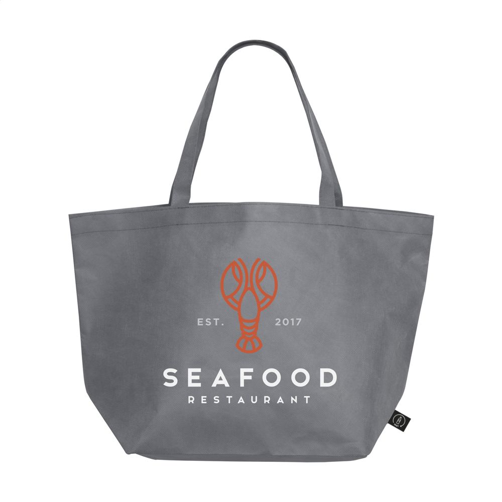 Royale, RPET-non-woven winkel- en strandtas (80 g/m²) met lange hengsels. Gemaakt van gerecyclede PET-flessen. Breed model. Sterk en licht. GRS-gecertificeerd. Totaal gerecycled materiaal: 98%. Inhoud ca. 25 liter.