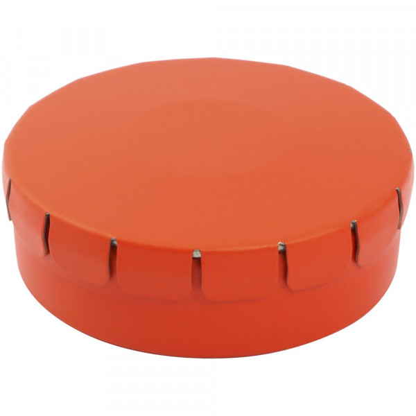 Suikervrije pepermunt in blik met gemakkelijke drukopening. Kan worden besteld in een breed scala van kleuren en gevuld met verschillende vullingen: pepermunt, extra sterke pepermunt, suikervrije pepermunt, fruitsmaak, hartvormige aardbeiensnoepjes, kaneel-, citroen- en pepermuntsmaak of chocolade. Kan worden gedecoreerd met een full colour digitale print op het deksel.