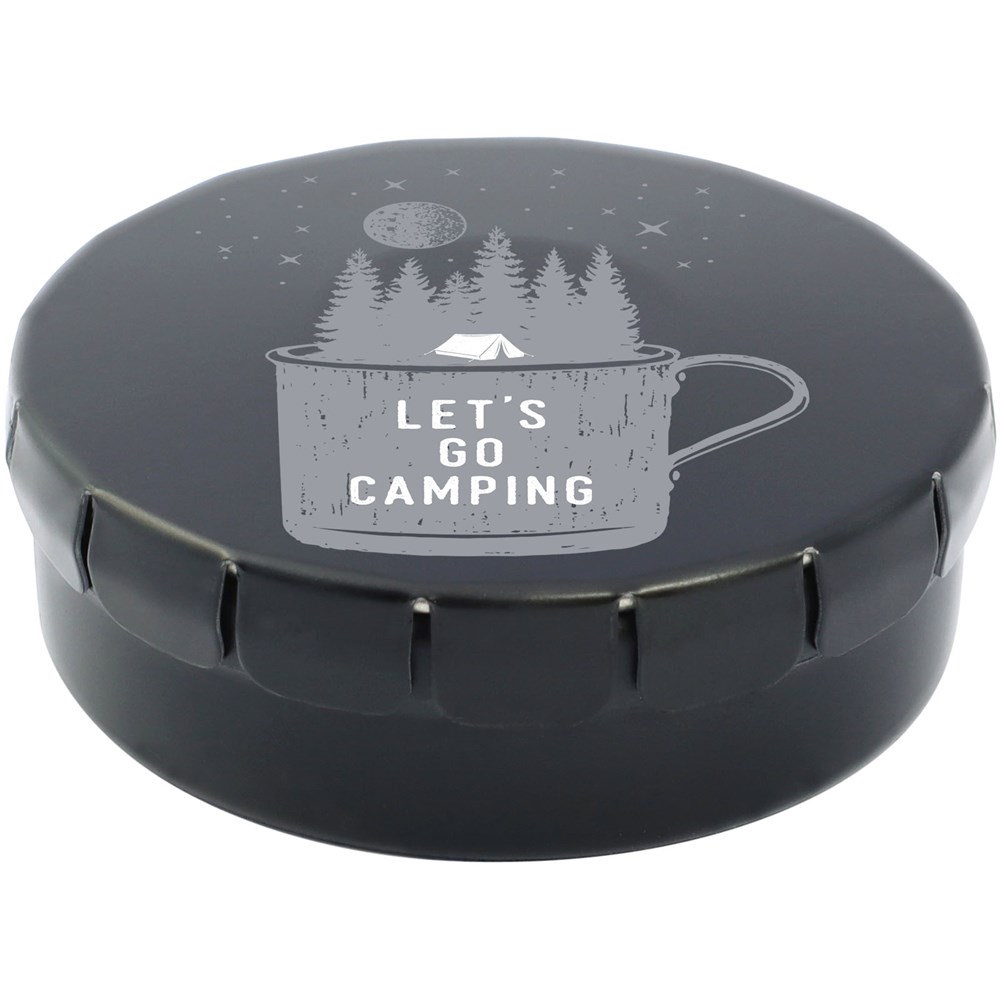Snoepjes met fruitsmaak in blik met gemakkelijke drukopening. Kan worden besteld in een breed scala van kleuren en gevuld met verschillende vullingen: pepermunt, extra sterke pepermunt, suikervrije pepermunt, fruitsmaak, hartvormige aardbeiensnoepjes, kaneel-, citroen- en pepermuntsmaak, of chocolade. Kan worden gedecoreerd met een full colour digitale print op het deksel. Nettogewicht: 12 gram.