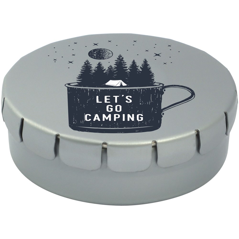 Snoepjes met kaneelsmaak in blik met gemakkelijke drukopening. Kan worden besteld in een breed scala van kleuren en gevuld met verschillende vullingen: pepermunt, extra sterke pepermunt suikervrije pepermunt, fruitsmaak, hartvormige aardbeiensnoepjes, kaneel-, citroen- en pepermuntsmaak, of chocolade. Kan worden gedecoreerd met een full colour digitale print op het deksel.