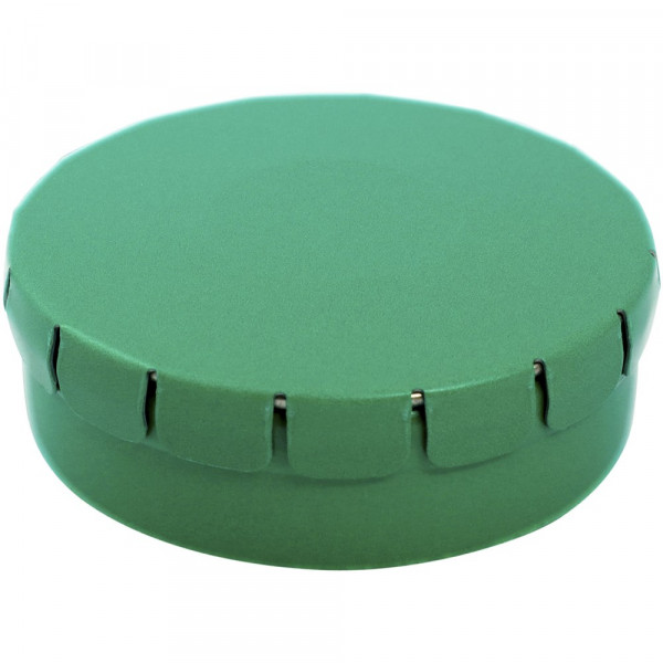 Snoepjes met citroen- en pepermuntsmaak in blik met gemakkelijke drukopening. Kan worden besteld in een breed scala van kleuren en gevuld met verschillende vullingen: pepermunt, extra sterke pepermunt, suikervrije pepermunt, fruitsmaak, hartvormige aardbeiensnoepjes, kaneel-, citroen- en pepermuntsmaak, of chocolade. Kan worden gedecoreerd met een full colour digitale print op het deksel.