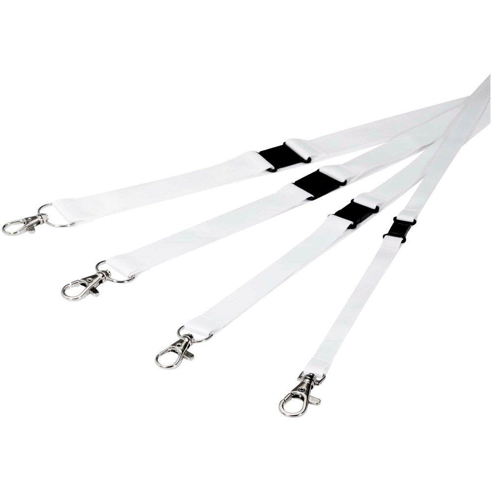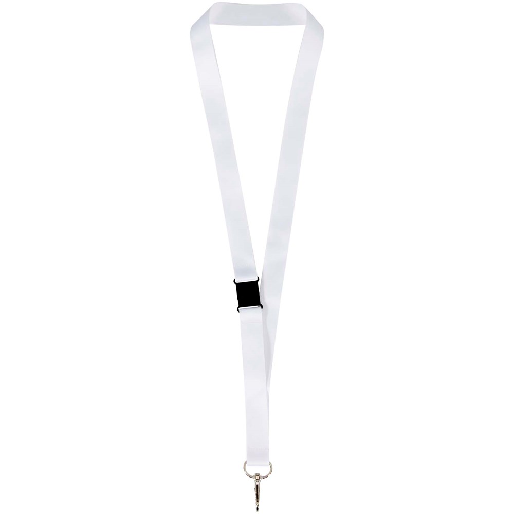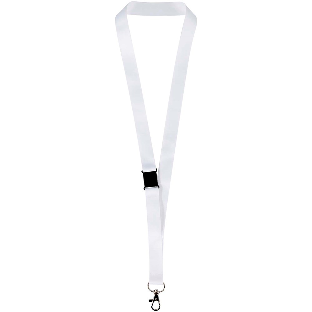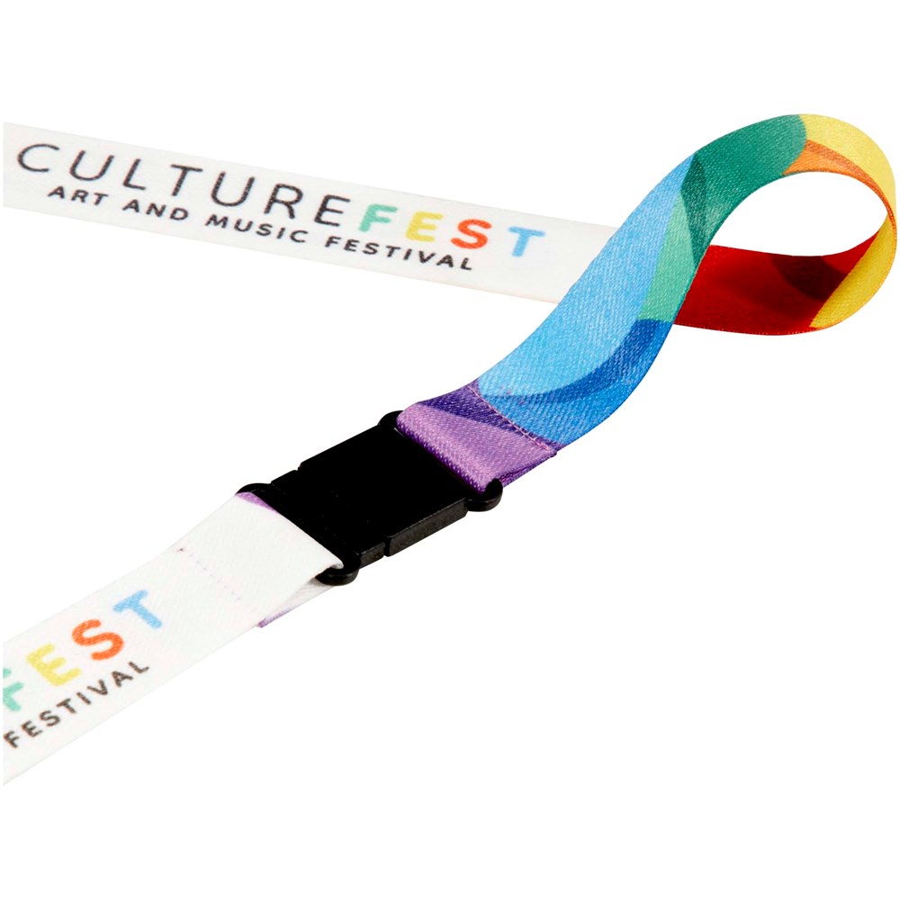 Een RPET-sublimatielanyard met full colour ontwerp, RPET-tape, een sleutelring en een gesp met breeksluiting die verstikkingsgevaar voorkomt. Kan een naambadge, ID-kaart of sleutels bevatten. Verkrijgbaar in 4 verschillende breedtes: 10, 15, 20 en 25 mm.