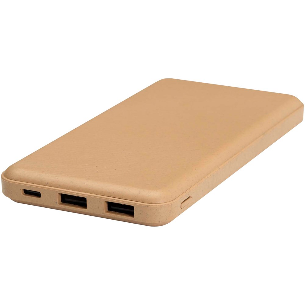 Biologisch afbreekbaar en compact vermogen met hoge capaciteit. Oplaadkabel inbegrepen. Ingang: DC 5 V/2000mA. Uitgang1: DC 5V2000mA. Uitgang 2: DC 5 V/2000mA. Batterij: Lithium-ion polymeer.
