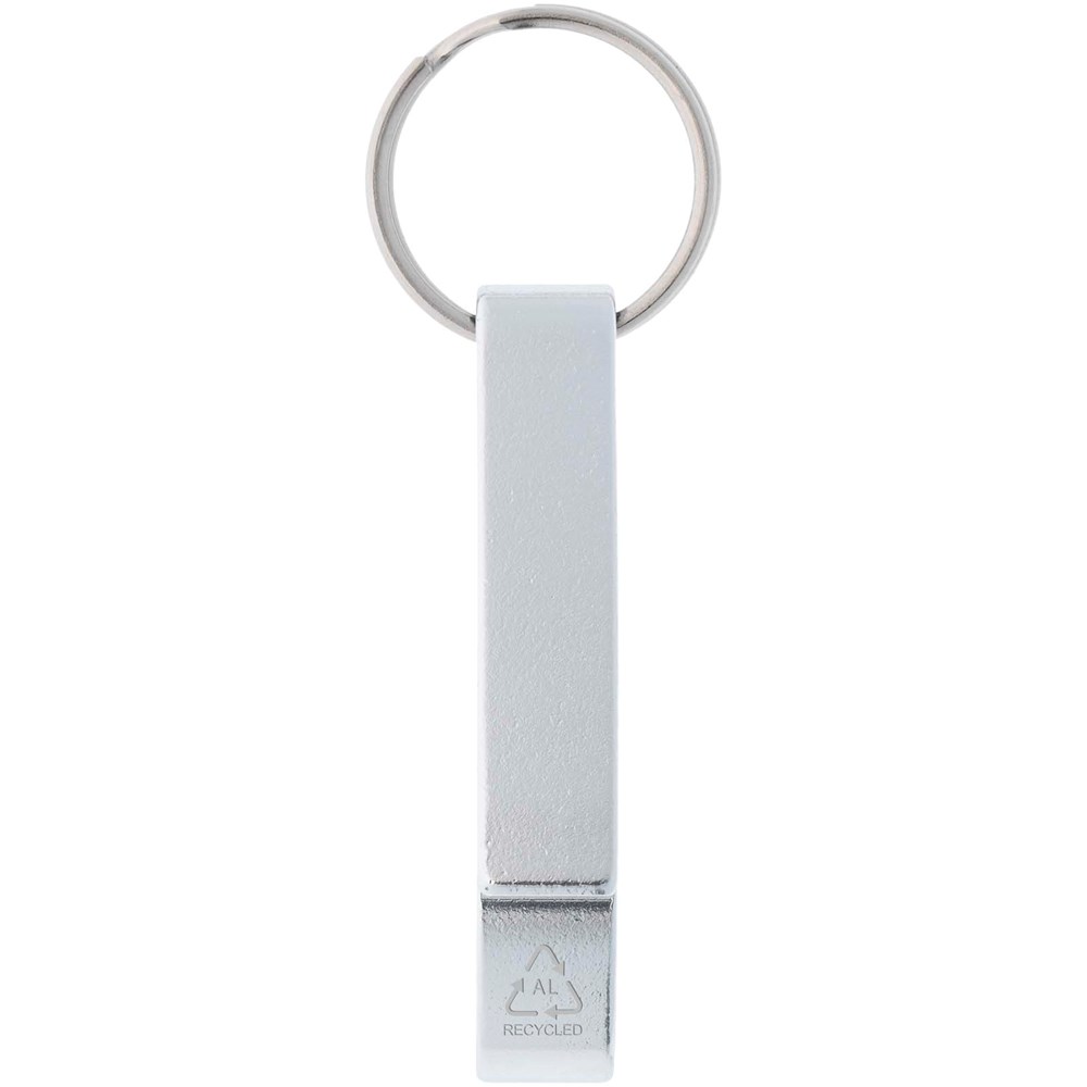 Tao fles- en blikopener van RCS gerecycled aluminium met sleutelhanger