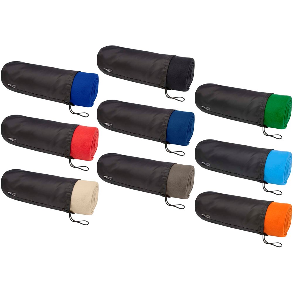 GRS gecertificeerd RPET polair fleece deken geschikt voor binnen en buiten. Geleverd met een 190T RPET-draagtas met trekkoordsluiting. Verpakt in een gerecyclede polybag. Afmetingen zak: lengte 34 cm, diameter 13 cm.
