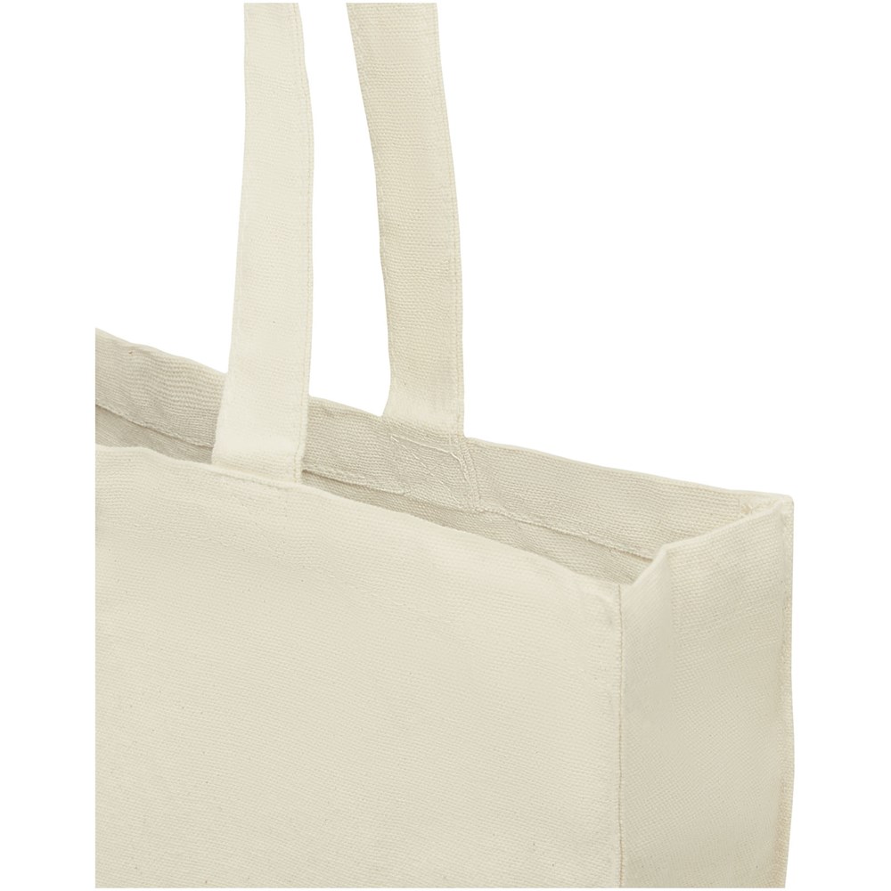 De Odessa totebag, gemaakt van 100% GRS-gerecycled katoen, is ontworpen voor comfortabel gebruik dankzij de 30 cm lange schouderhengsels en het ruime hoofdvak met vouwbodem. Of het nu is om zware boeken of boodschappen te dragen, deze tas voldoet aan alle wensen. De drukmethodes die voor deze tas beschikbaar zijn, zijn eveneens GRS-gecertificeerd, waardoor de hele toeleveringsketen transparant en gecertificeerd is. Het katoen van 220 g/m² zorgt voor duurzaamheid en betrouwbaarheid, met een draagvermogen tot wel 10 kg. Gemaakt in India. Inhoud: 13 liter.
