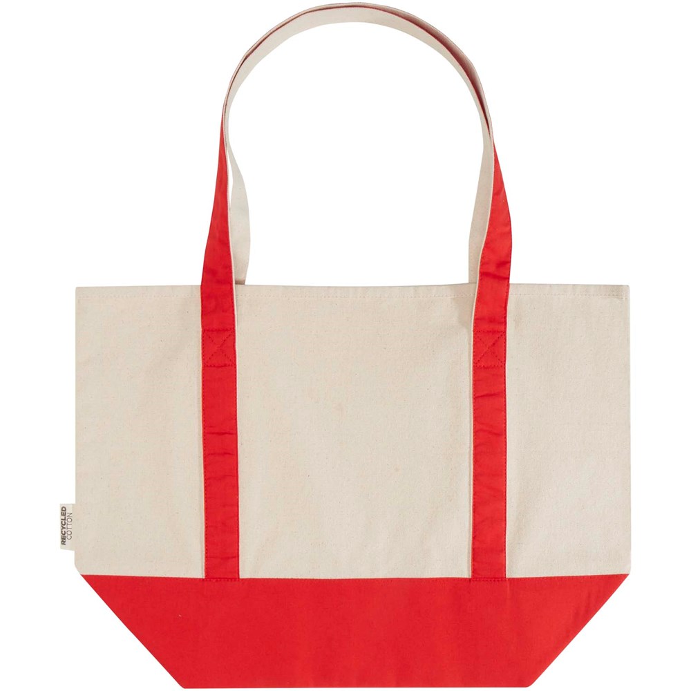 De Sam draagtas van 100% GRS-gecertificeerd gerecycled katoen is de perfecte tas voor een picknick of om boodschappen te doen. De katoendichtheid van 320 g/m² katoen maakt de tas stevig, duurzaam en de dubbele handgrepen maken het geschikt om zware spullen in het hoofdvak te dragen. De afdrukmethoden die beschikbaar zijn voor deze draagtas zijn ook GRS-gecertificeerd, waardoor de hele toeleveringsketen transparant en gecertificeerd is. Lengte uitklapbaar handvat: 30 cm. Geschikt voor een gewicht tot 10 kg. Inhoud: 15 liter. Gemaakt in India.