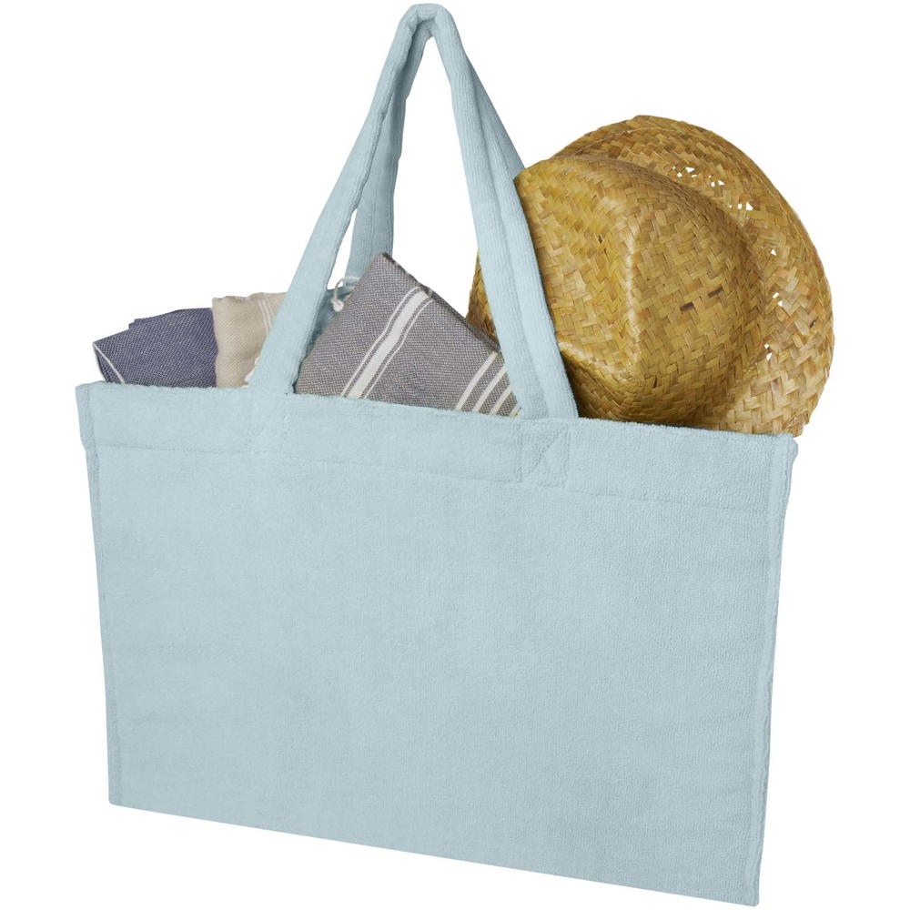 Zacht, stijlvol en moeiteloos veelzijdig: de Siam badstof tas is de perfecte zomergenoot. Gemaakt van zachte, GRS-gecertificeerde badstof (88% gerecycled polyester, 12% polyamide) en voelt comfortabel en toch licht aan. Ideaal voor uitstapjes in warm weer. Deze tas is zowel praktisch als chique, en is voorzien van een uitklapbare handgreep van 27 cm voor eenvoudig dragen. De tas heeft een ruime inhoud van 13 l. Of je nu naar het strand gaat, door de stad slentert of boodschappen doet, de Siam badstof tas voegt een ontspannen maar verfijnde touch toe aan elke look.