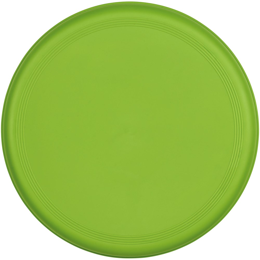 Frisbee gemaakt van 100% gerecycled plastic, een combinatie van een leuk promotie-idee met sterke duurzame referenties. Gemaakt in het Verenigd Koninkrijk en voldoet aan EN72. De frisbee kan een gespikkelde afwerking hebben door de aard van het gerecyclede materiaal. Niet geschikt voor kinderen jonger dan drie jaar. Diameter: 23 cm.