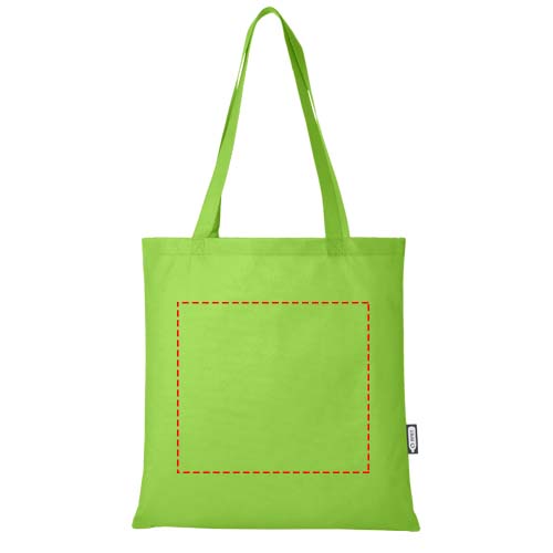 Gemaakt van duurzaam en scheurbestendig RPET, is de Zeus GRS gerecycleerde grote tote bag een perfecte en meer verantwoorde optie voor beurzen of conferenties. Het slanke ontwerp maakt het een elegant model en geschikt voor het dragen van lichte items zoals een notitieboek en een pen. De handvatten zijn 29 cm lang, waardoor de tote bag gemakkelijk over de schouder te dragen is. Draagvermogen tot 5 kg.