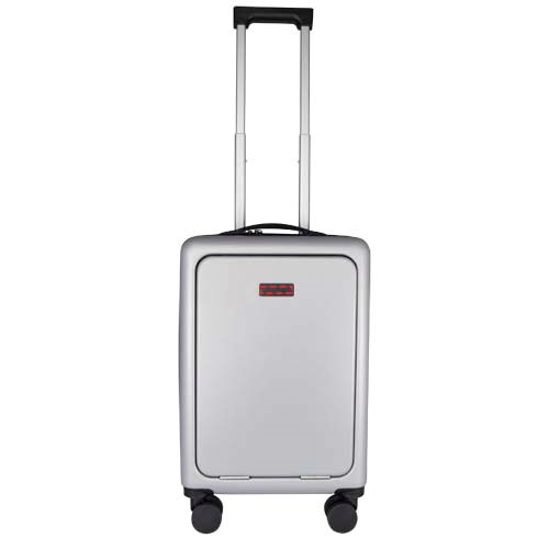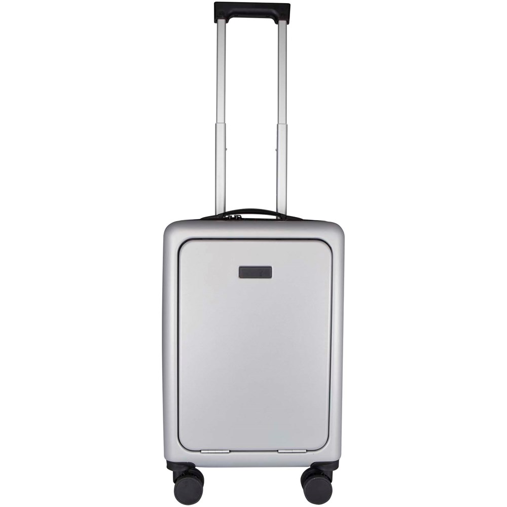 De Rover Pro 20" cabinetrolley valt echt op door het open 20" laptopvak aan de voorkant en de geïntegreerde USB-oplaadpoort, waardoor deze een ideale reisgenoot is voor zowel zakenreizen als vakanties. Deze trolley is gemaakt van slagvast, GRS gecertificeerd gerecycled plastic en heeft een hoogwaardige RPET-voering. Hij beschikt over een open laptopvak aan de voorkant met opbergvakken voor elektronische accessoires en een TSA-cijferslot voor zowel het hoofdvak als het open voorvak. De trolley is bovendien voorzien van dubbele wielen die 360 graden kunnen draaien, voor eenvoudige bediening op luchthavens. Kan bij de meeste reguliere luchtvaartmaatschappijen als handbagage worden meegenomen.