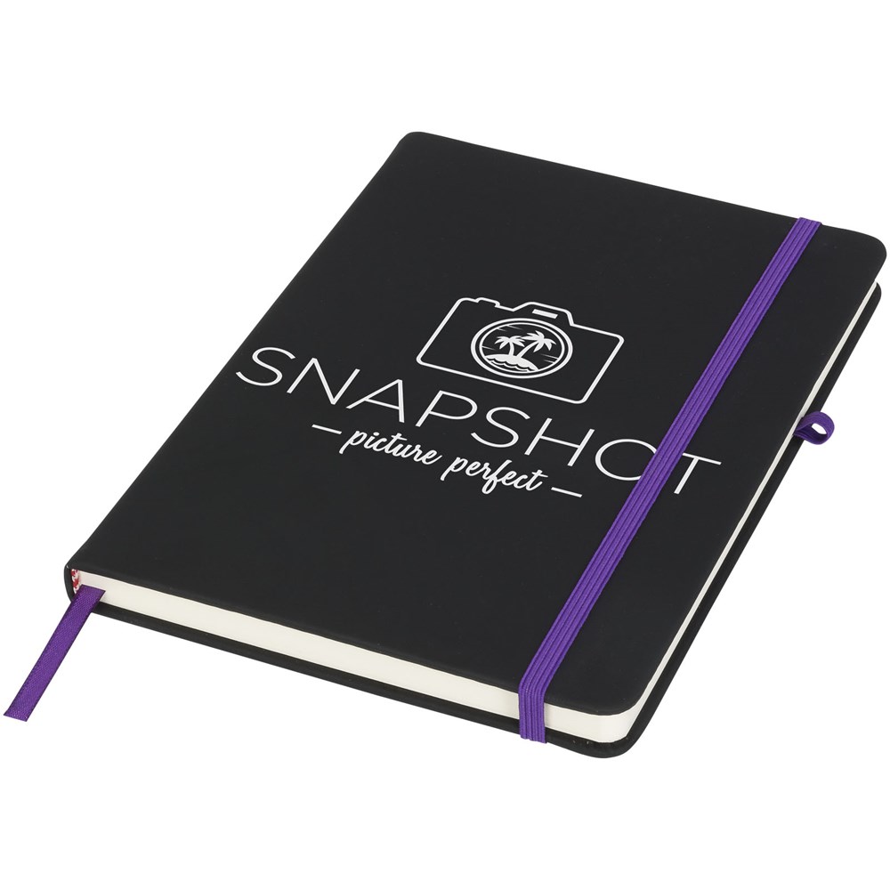 Het Noir-notitieboek heeft een harde PU omslag wat zacht aanvoelt voor een tastbare afwerking. Elk notitieboek heeft een gekleurd sluitbandje, penlus en bladwijzer. Het notitieboek bevat 96 bladen (70g/m2) crèmekleurig lijntjespapier.