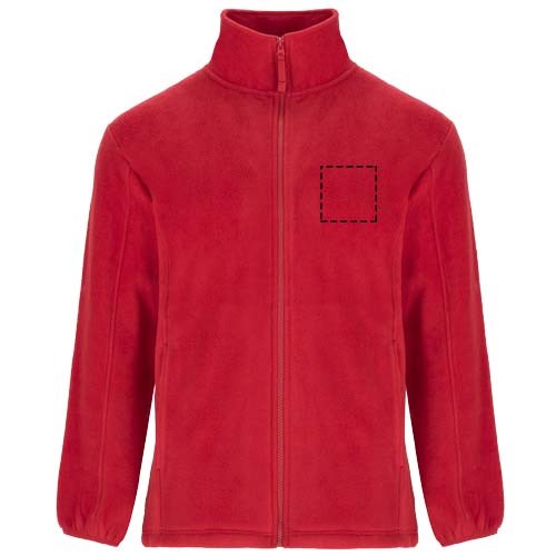 Fleecejack met staande gevoerde kraag en bijpassende versterkte bedekte naden. Geïnjecteerde rits met bijpassende trekker van stof. Zijzakken. Manchetten met elastische bies. Onderzoom met verstelmechanismen aan de binnenkant. Verwijderbaar etiket. Het model is 115 cm en draagt maat 5/6.