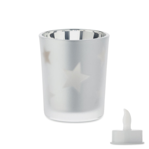 LED waxinelichtje in PP-kunststof, theelichtje in glazen pot. Inclusief 1 CR2032 knoopcelbatterij.