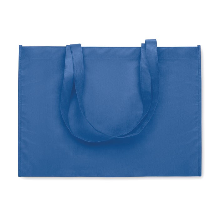 Boodschappentas of strandtas van RPET non-woven met zijvouwen en lange hengsels. 80 gr/m².