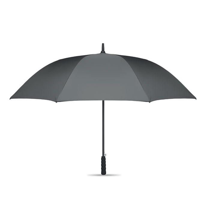 27 inch auto-open windbestendige paraplu in 190T RPET-pongee. Glasvezel schacht en baleinen. Tarwestro en gerecycled ABS handvat. Kunststof uiteinden en top.