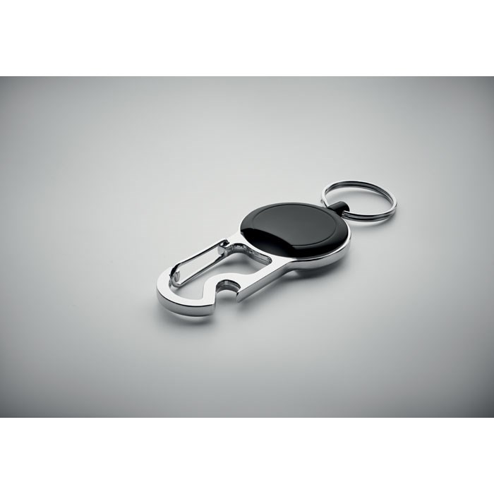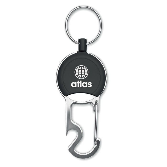 Intrekbare badgehouder in ABS met clip, sleutelring en flesopener.