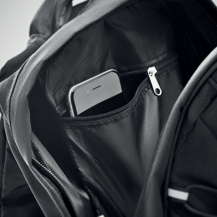 Rugzak van 600D RPET met donker koord voor op de rugzak en een reflecterend paneel voor betere...meer
