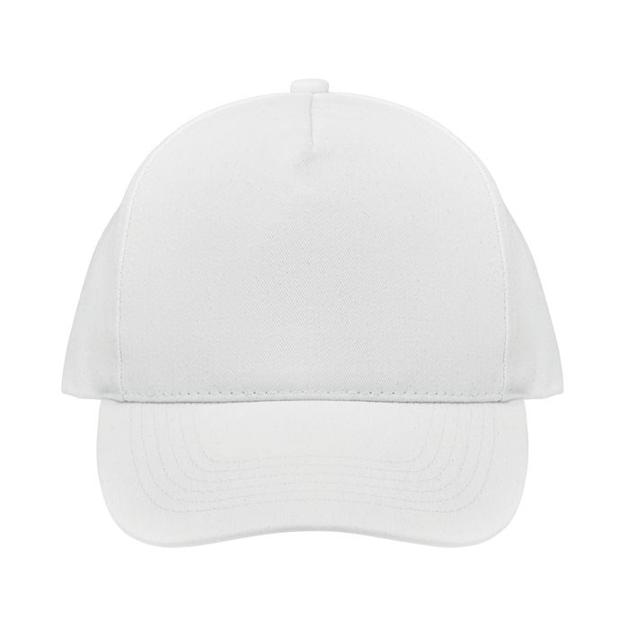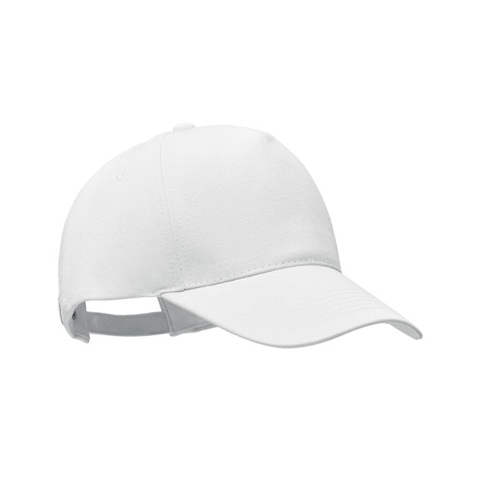 Baseballpet met 5 panelen, van 250 gr/m² organische geborsteld katoen met metalen verstelbare gespsluiting.