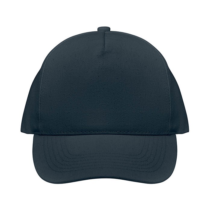 Baseballpet met 5 panelen, van 250 gr/m² organische geborsteld katoen met metalen verstelbare gespsluiting.