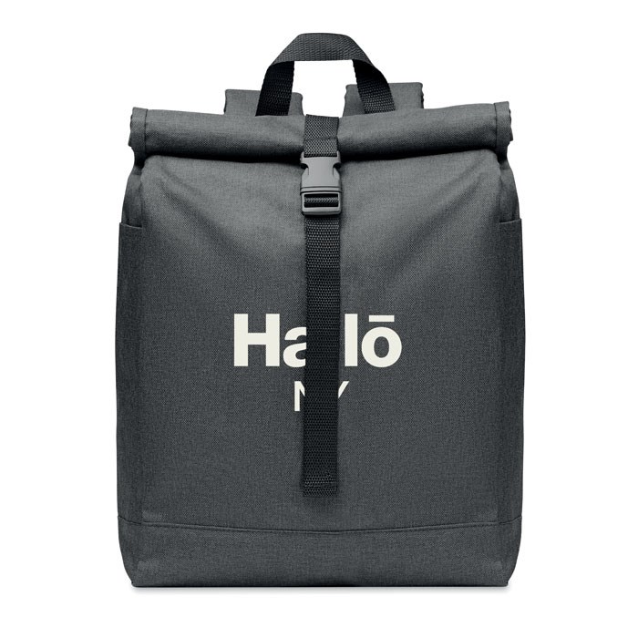 Rugzak van 600D duotone RPET polyester met roll-up sluiting.meer