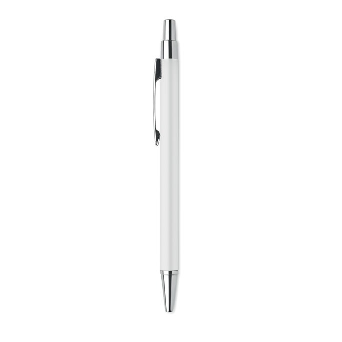Balpen met drukknop in gerecycled aluminium. Blauwe inkt.meer