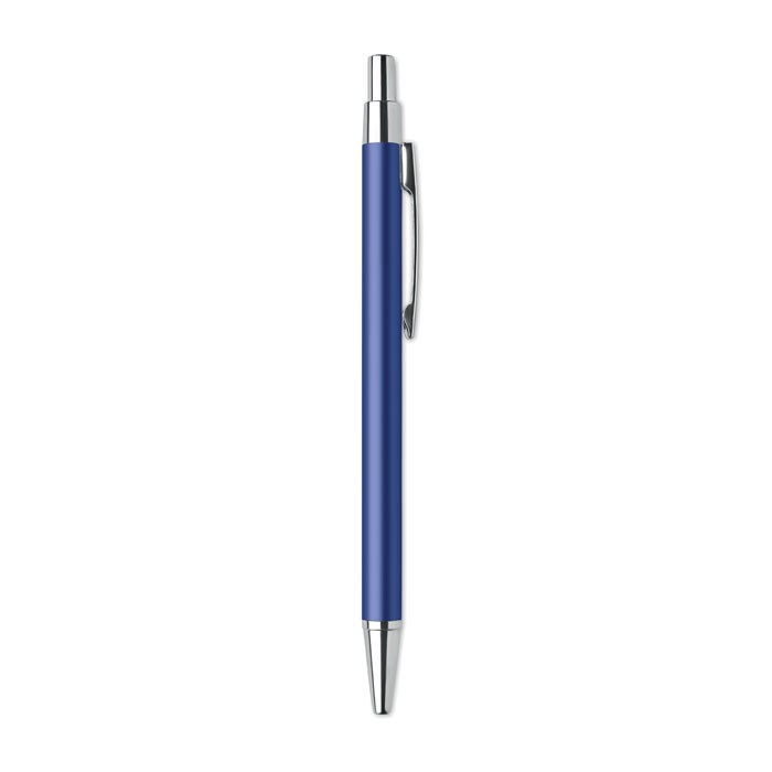 Balpen met drukknop in gerecycled aluminium. Blauwe inkt.