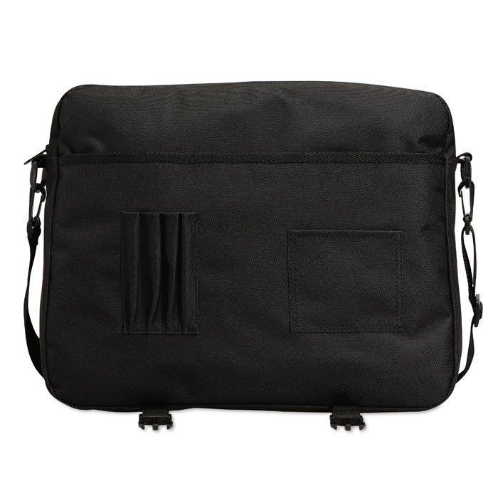 Documententas met diverse vakken, een voorflap met sluitclips en een hoofdvak met ritssluiting. Verstelbare en afneembare schouderband, 600D polyester.