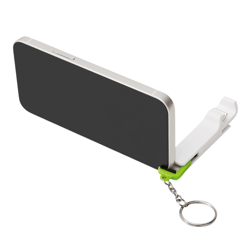 Sleutelhanger, flesopener en telefoonhouder DOUBLE OPEN: met uitschuifbare houder voor een smartphone, geïntegreerde flesopener en sleutelring