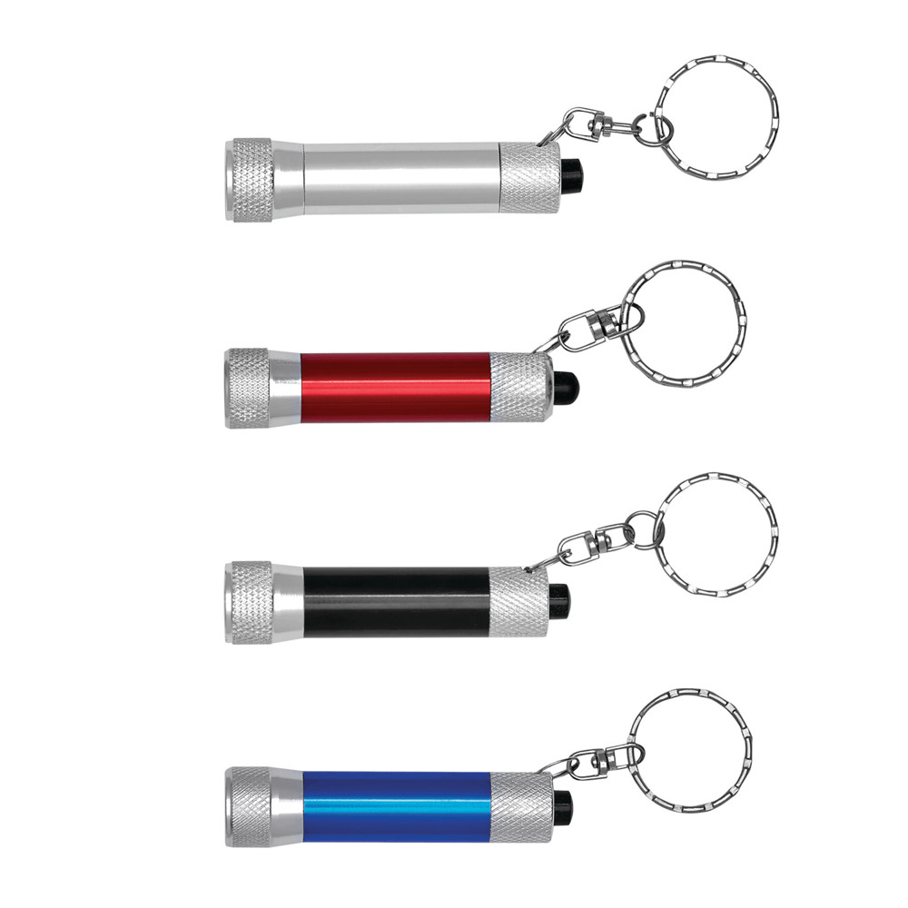Aluminium sleutelhanger FLARE met LED zaklamp.meer