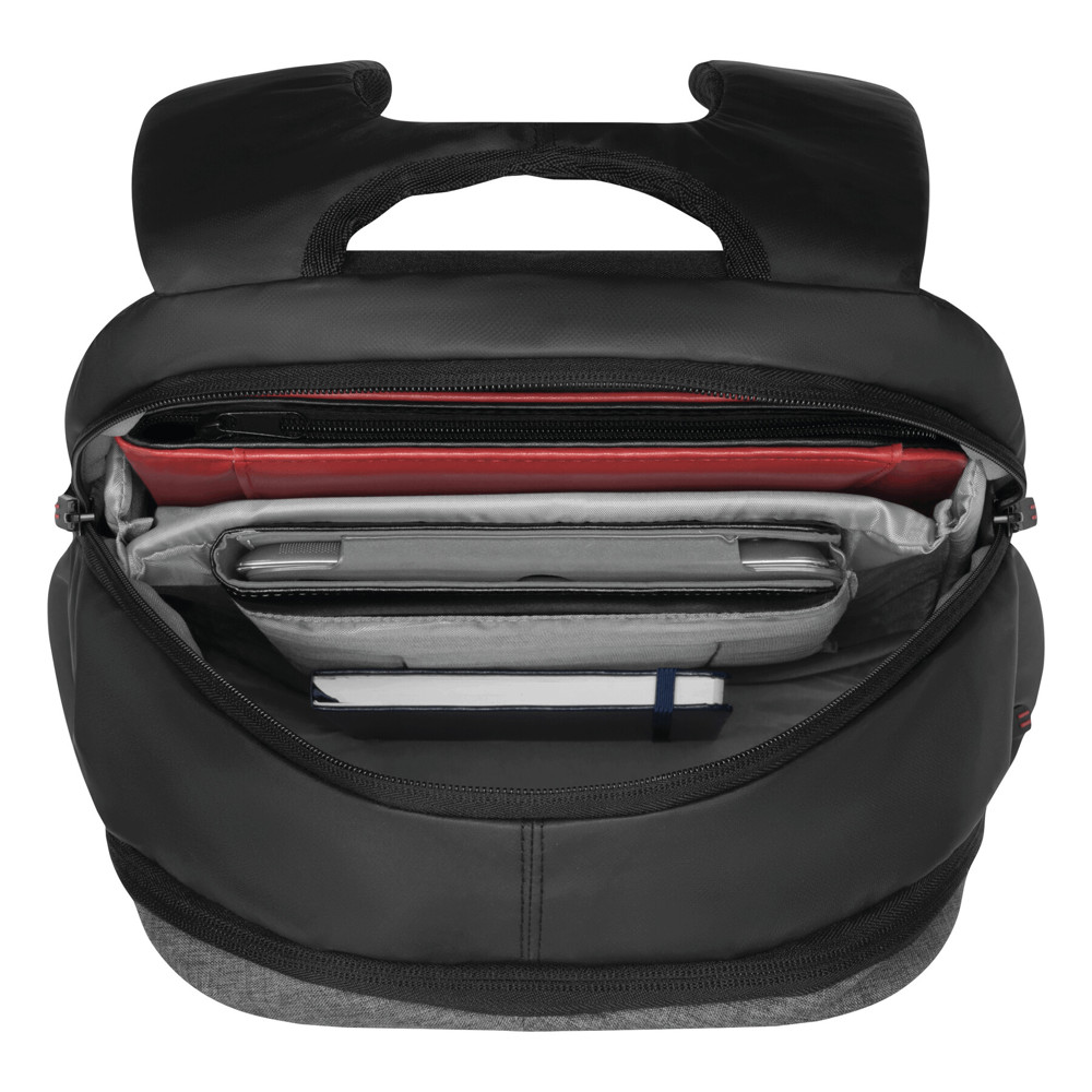 Rugtas SPLIT: 1 voorvak met rits, 2 hoofdvakken met rits, waarvan 1 met gefoamd notebookvak en 1...meer