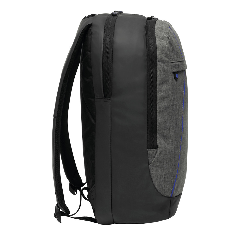Rugtas SPLIT: 1 voorvak met rits, 2 hoofdvakken met rits, waarvan 1 met gefoamd notebookvak en 1 insteekvak , het andere hoofdvak met kleine organiser, handvat, gefoamde schouderbanden en rugpaneel