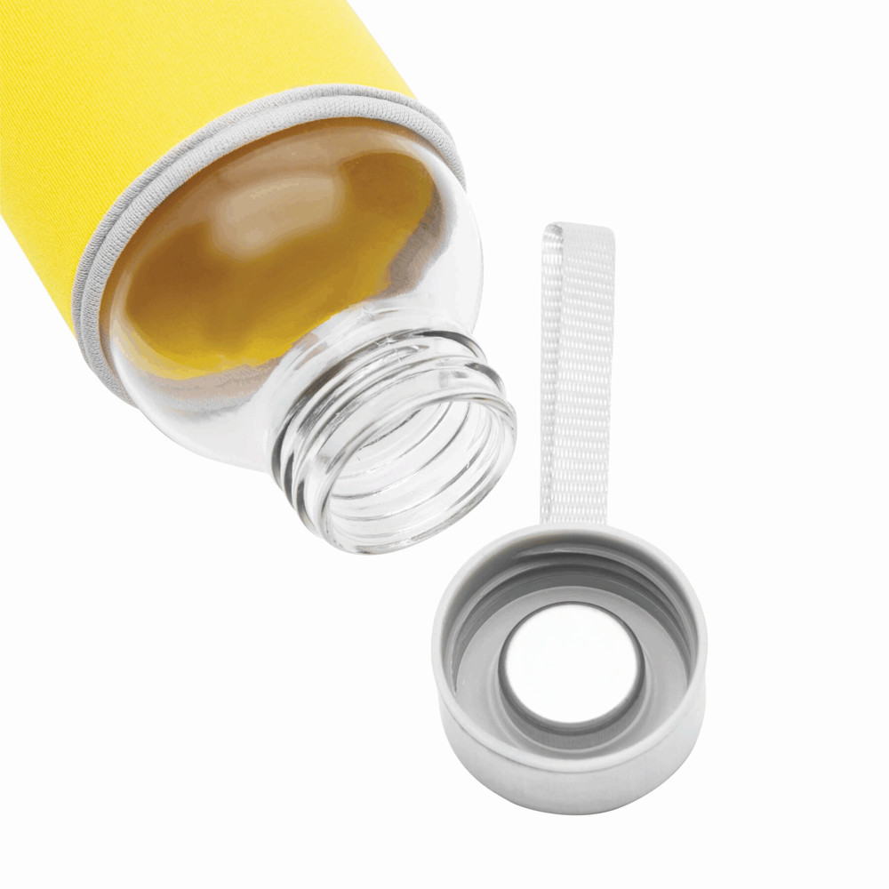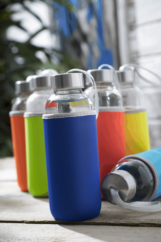 Glazen fles TAKE WELL: met schroefdop en draaglus, incl. gekleurde beschermende huls, inhoud ca. 450 ml.