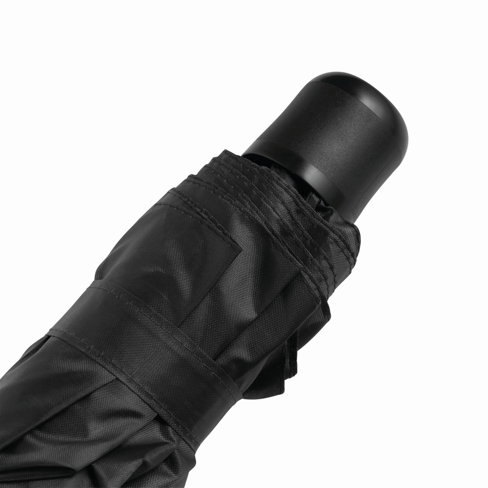 Pocket-paraplu PICOBELLO: 3-delige metalen steel met metalen/fiberglas baleinen; zwarte kunststof handvat, metalen tips, polyester doek, sluitband met klittenband.