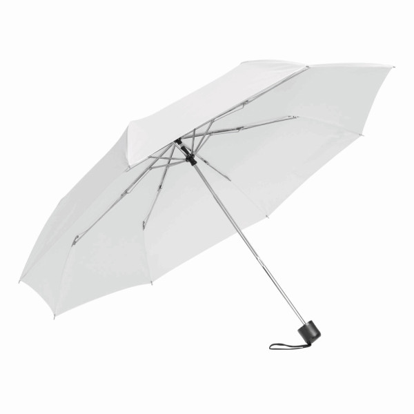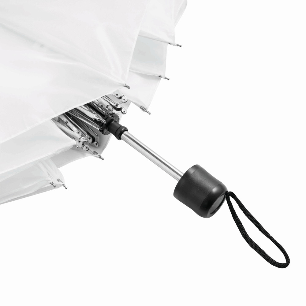 Pocket-paraplu PICOBELLO: 3-delige metalen steel met metalen/fiberglas baleinen; zwarte kunststof handvat, metalen tips, polyester doek, sluitband met klittenband.