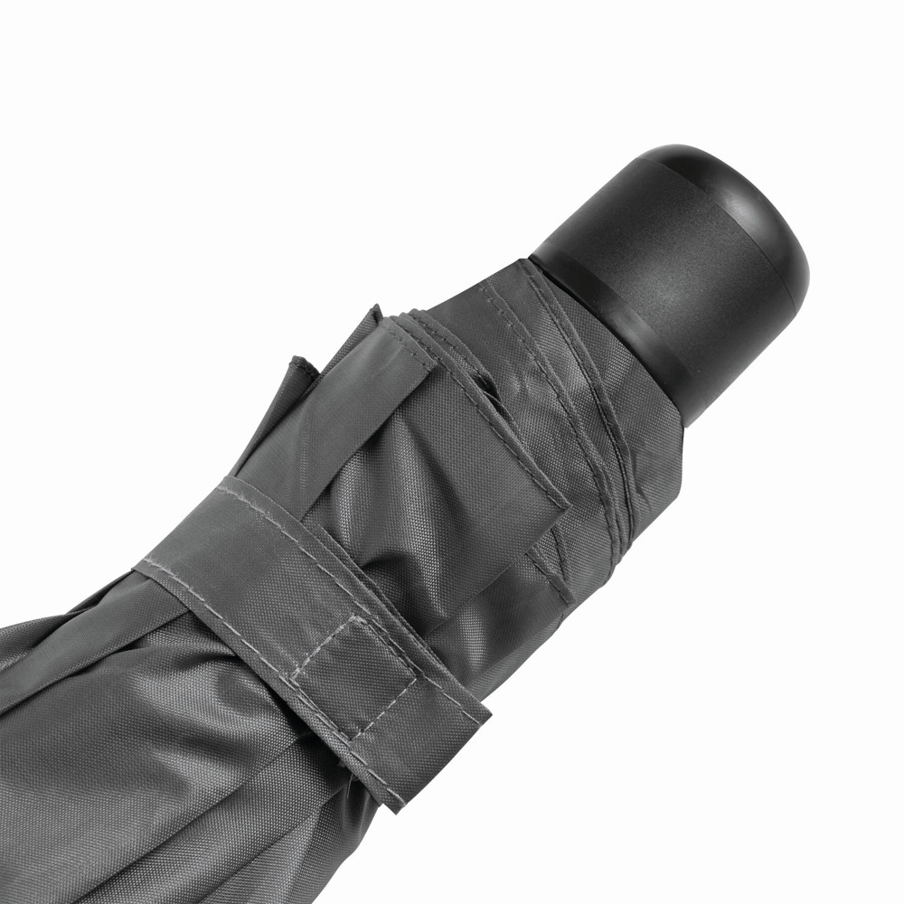 Pocket-paraplu PICOBELLO: 3-delige metalen steel met metalen/fiberglas baleinen; zwarte kunststof handvat, metalen tips, polyester doek, sluitband met klittenband.