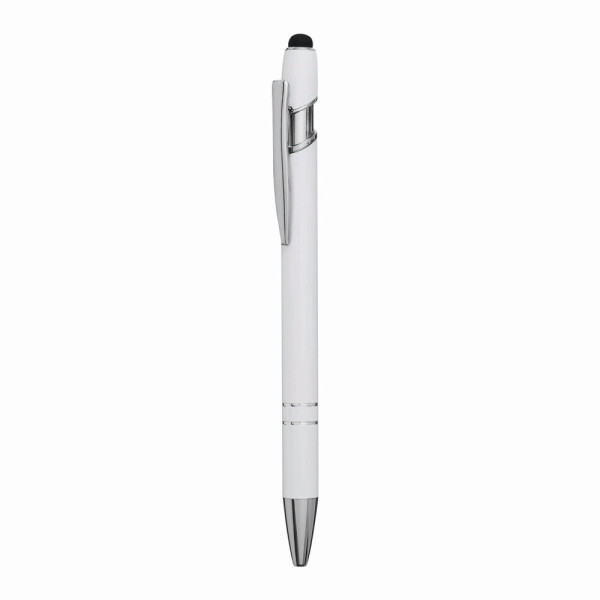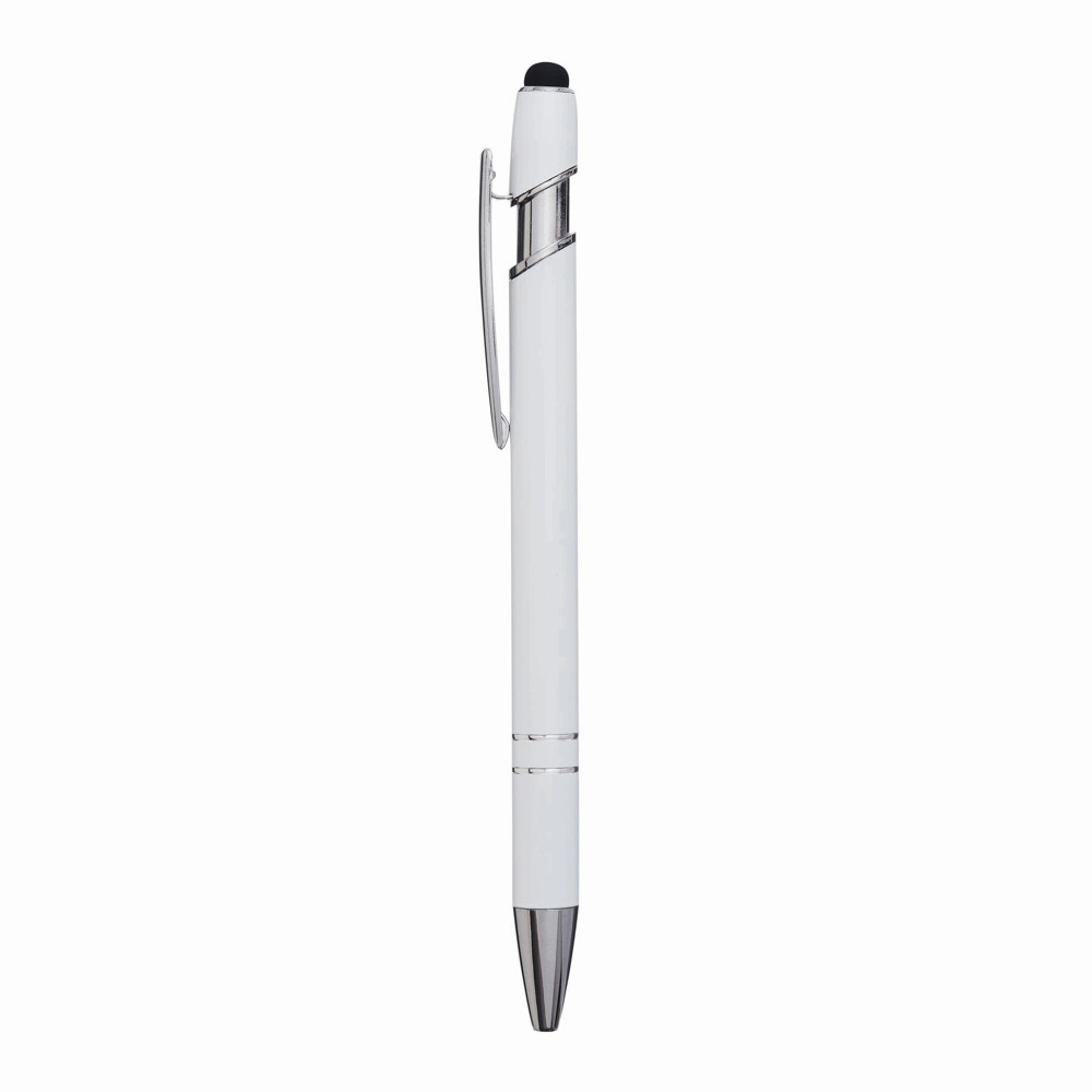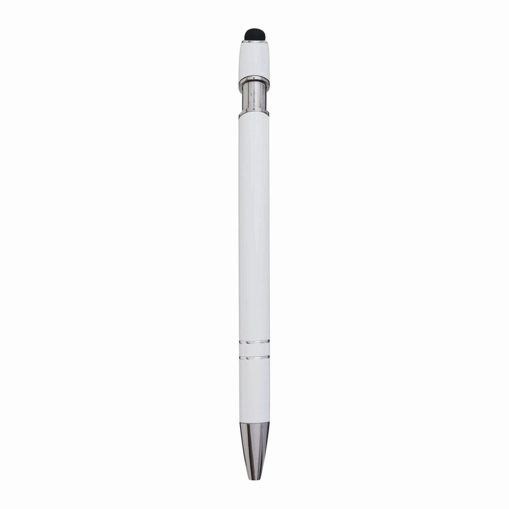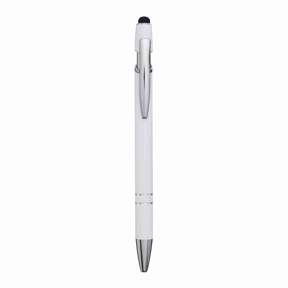 Aluminium balpen MERCHANT: met glanzende metalen behuizing, drukmechanisme, aan het uiteinde van de houder met touchscreen punt, blauwschrijvend