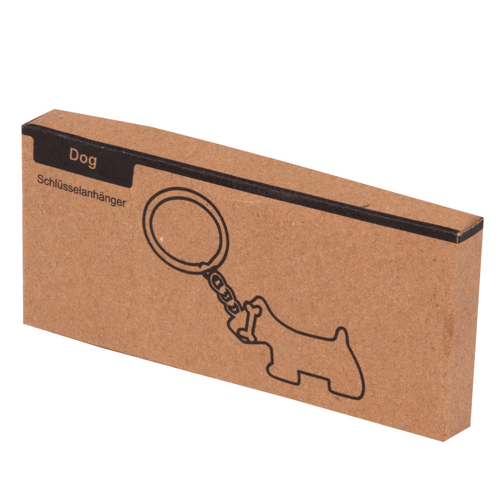 Metalen sleutelhanger DOG in de vorm van een hond met bot.