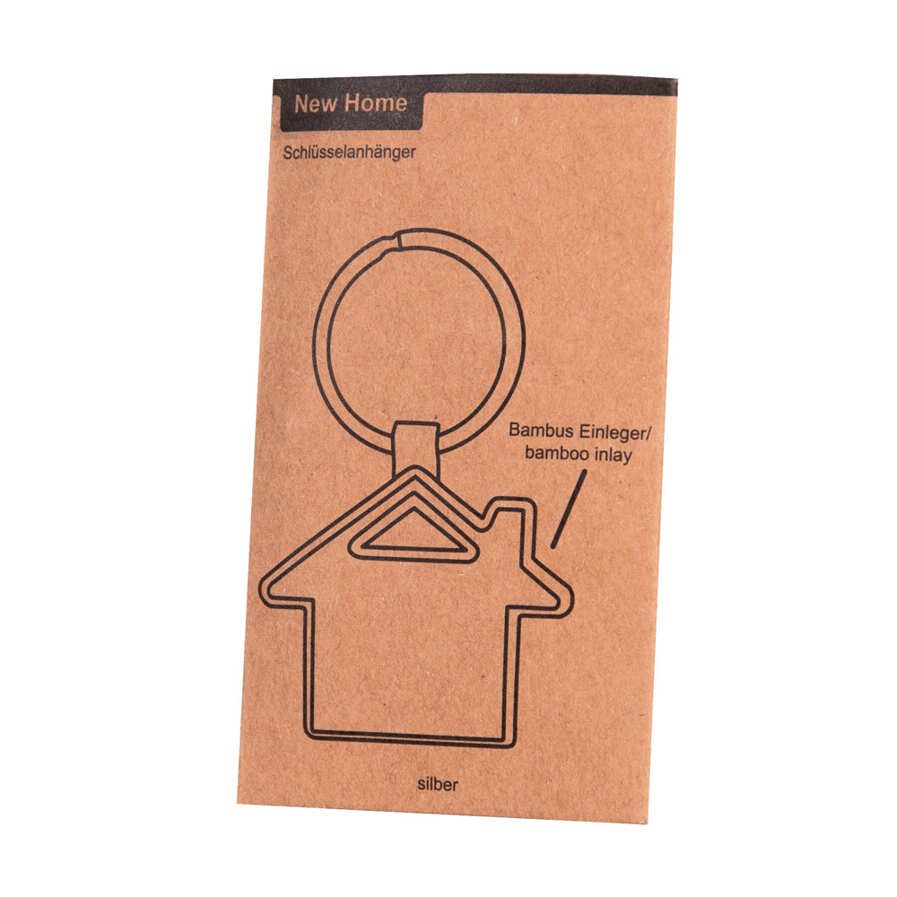 Sleutelhanger NEW HOME: Metalen huisvorm met bamboe inzetstukmeer
